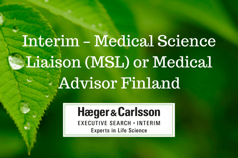 Haeger & Carlsson Executive Search and Interim is searching for candidates to take on a consultant role as Pharma MSL/Medical Advisor in Finland. Our customer is an exciting and highly scientific Pharma company with new interesting medicines coming to the market.